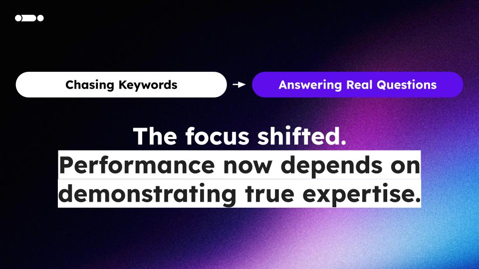 Performance now depends on demonstrating true expertise rather than simply optimising for search terms. Understanding real customer intent became paramount. User queries, search intent, and data provide true insight for understanding real customer behaviour. Semantic questions matter. Search Console became gold.